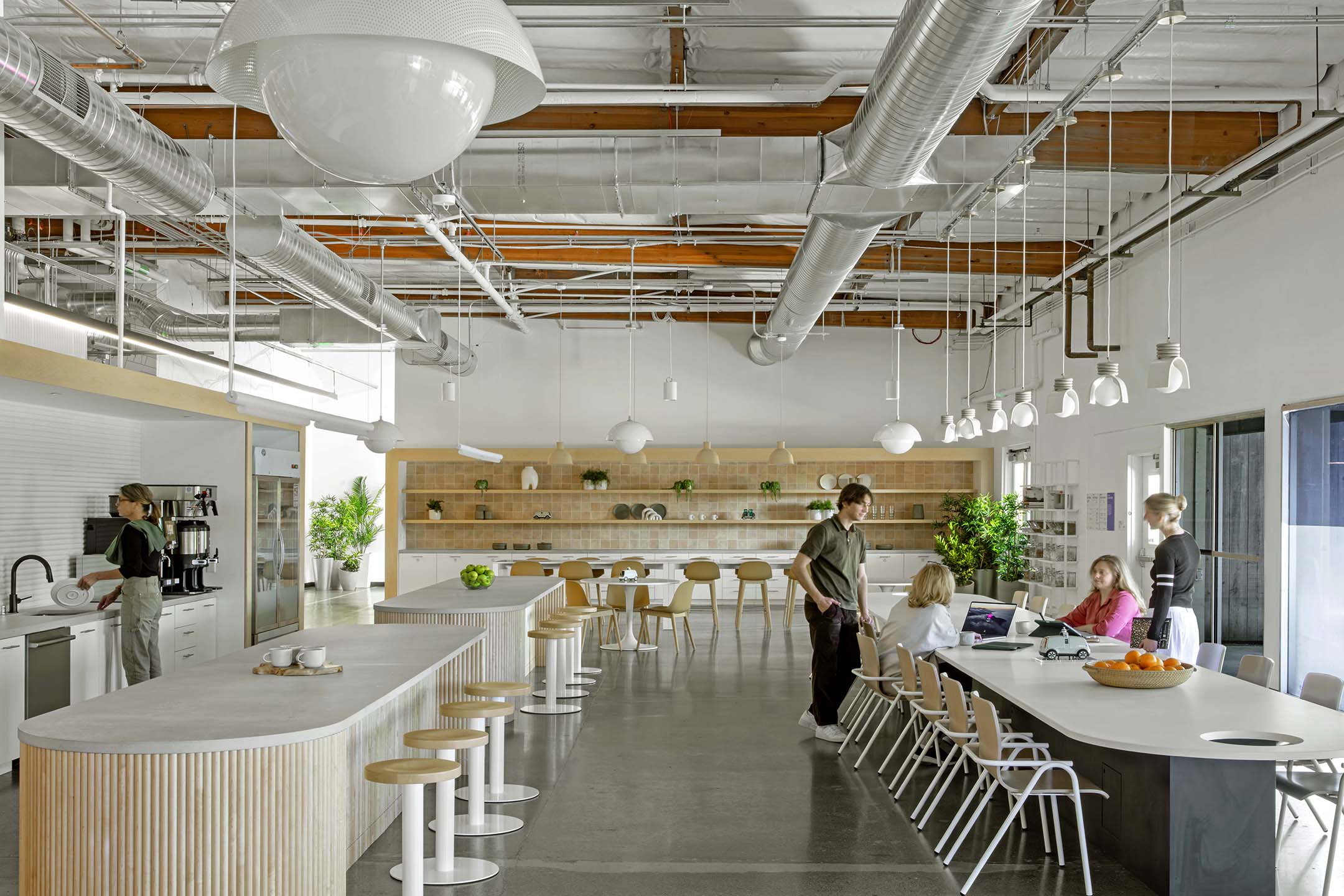 - Elkus Manfredi transformed 165,000 square feet of cavernous warehouse space into a human-scaled office, fostering connection, choice, and spontaneous interaction.