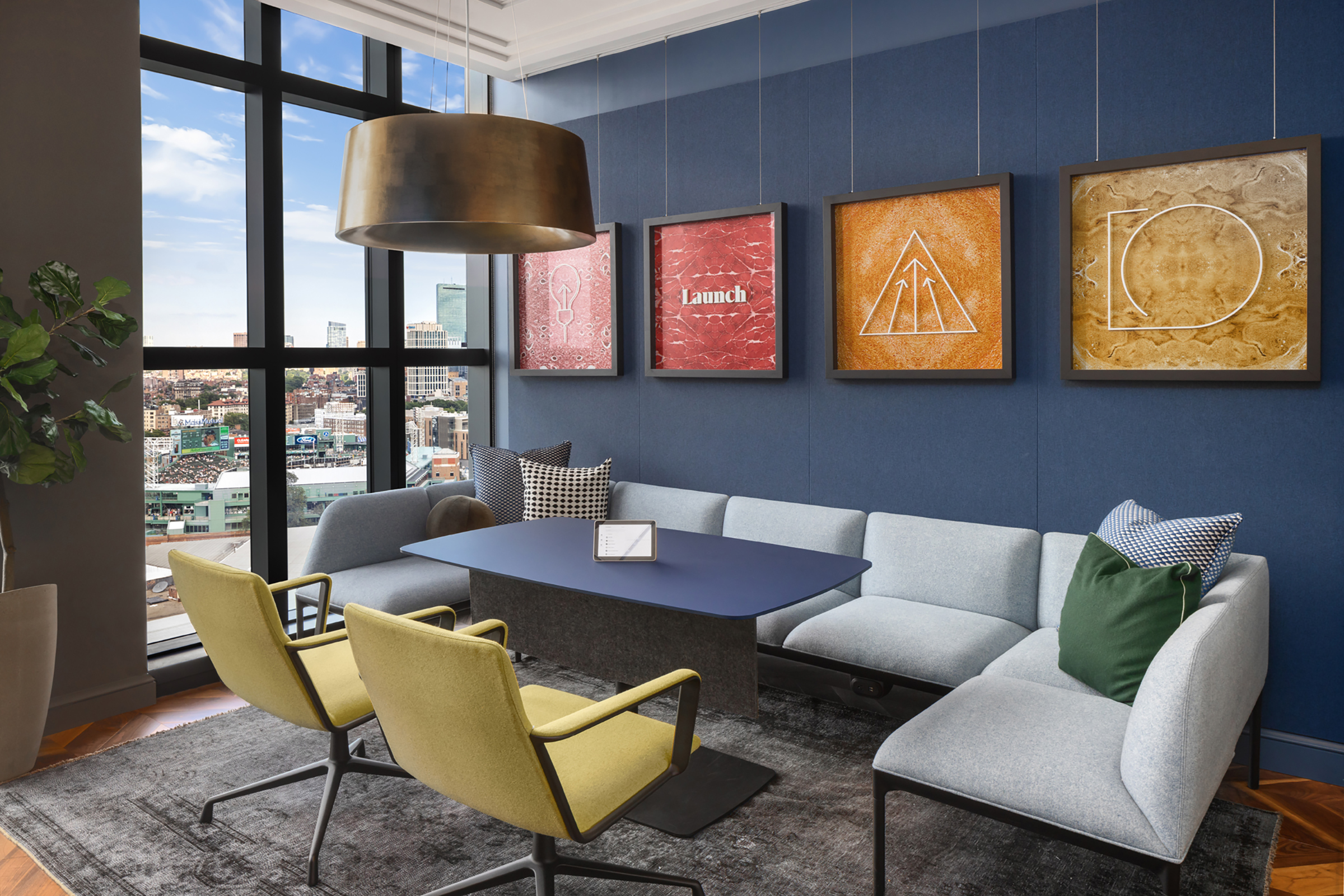 • Special features of the project include a 50-foot-long deck offering employees views of Fenway Park, an airy blue employee café with a long family farm table, a patient impact wall that celebrates the patients and families whose lives are transformed by the companies Third Rock Ventures has created, and collaborative office neighborhoods.