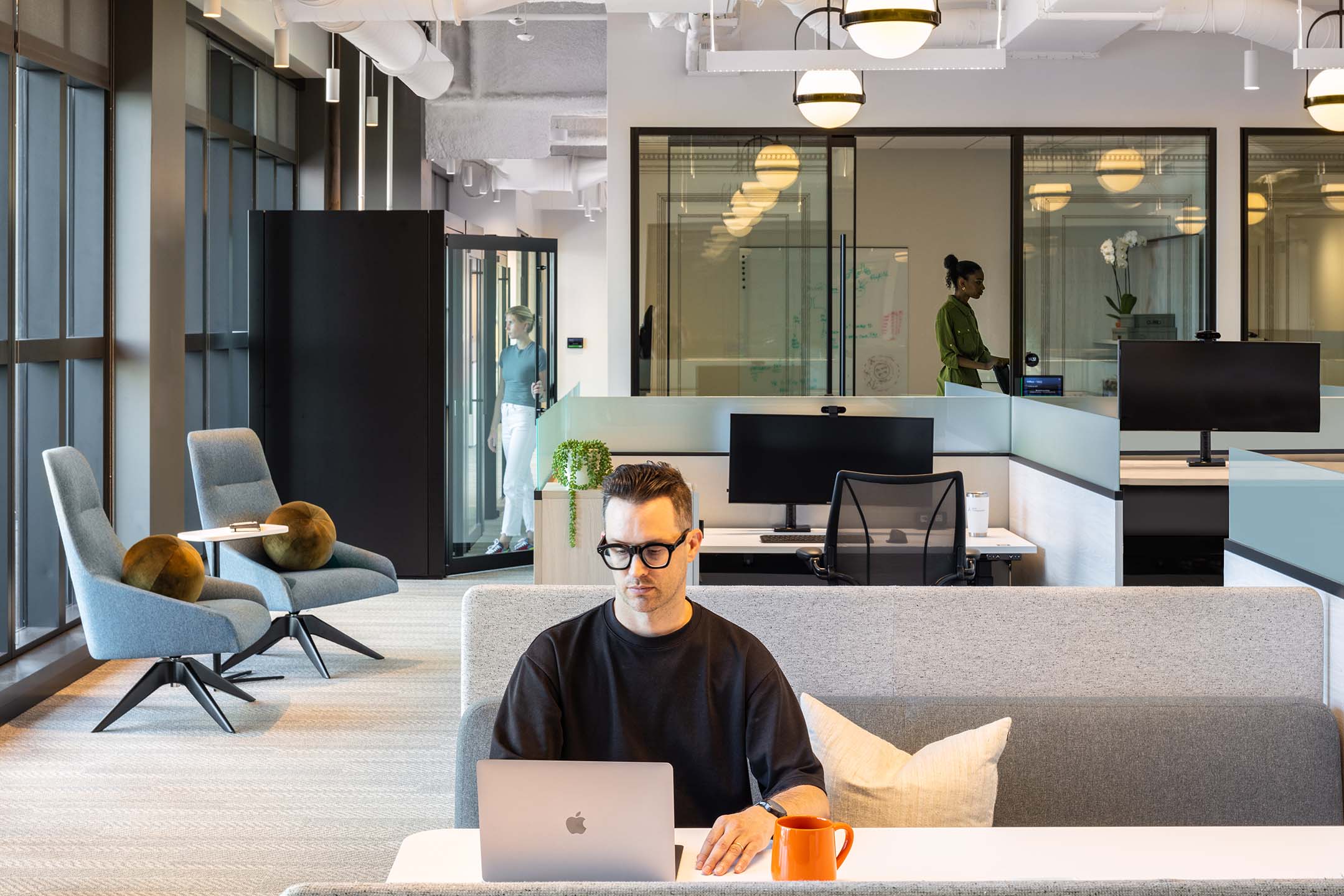 • Designers used multiple strategies to infuse the new space with a sense of the company’s origins, creating layers that add deeper dimension to the building’s contemporary proportions and materials using subtle cues to the past.